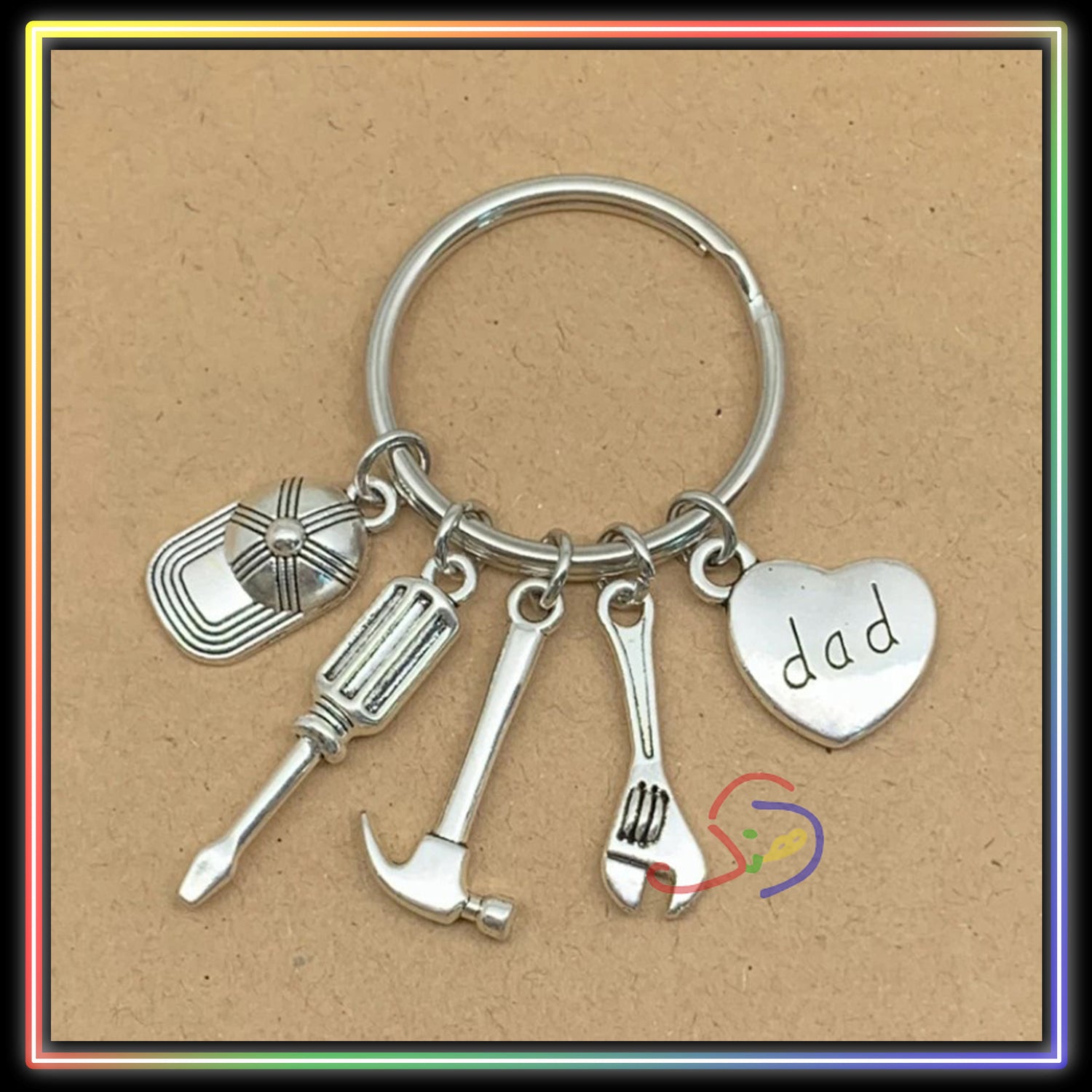 - Metallic keychain with cute tool charms