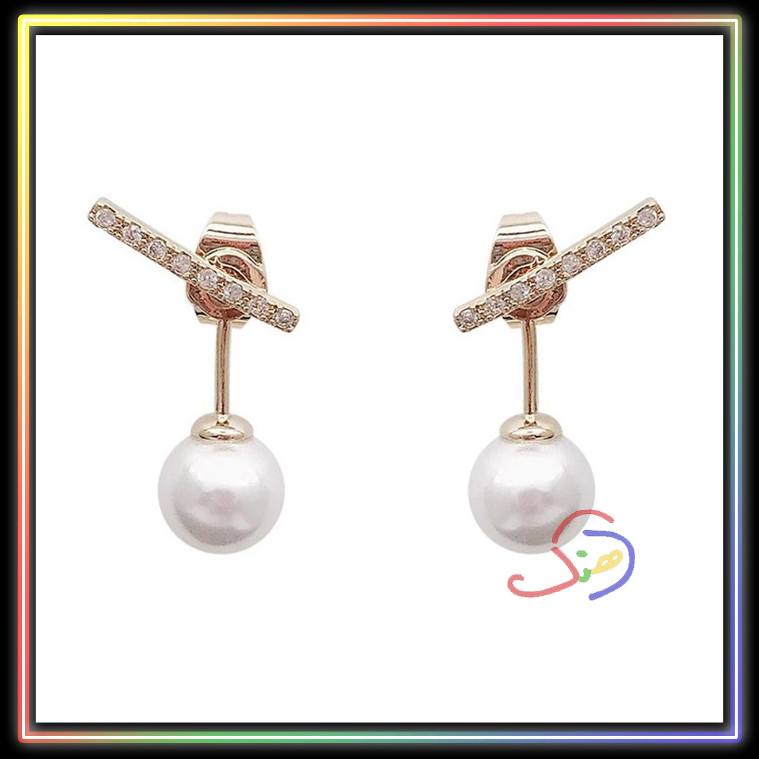 - Delicate pearly ear-studs with tiny rhinestones