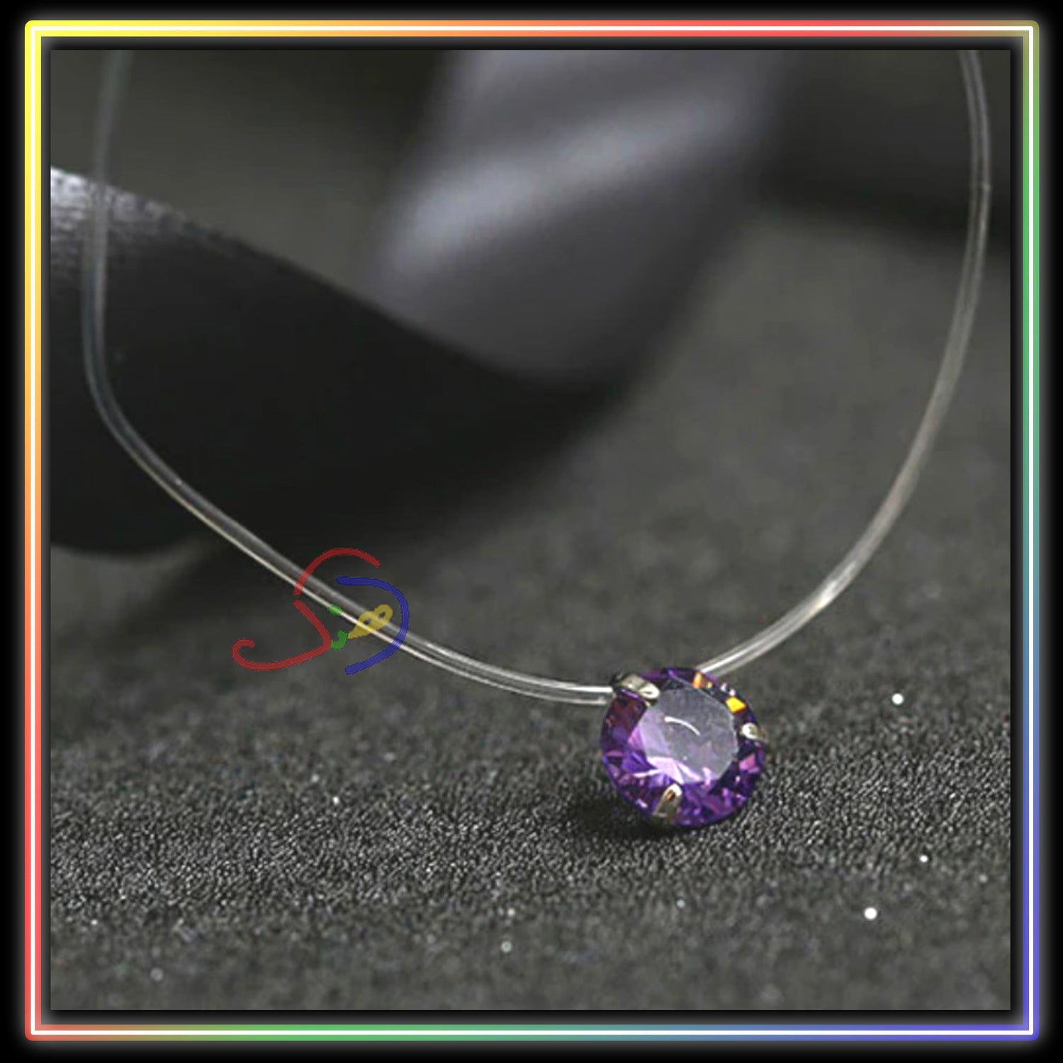 Purple Rhinestone Necklace (Transparent)