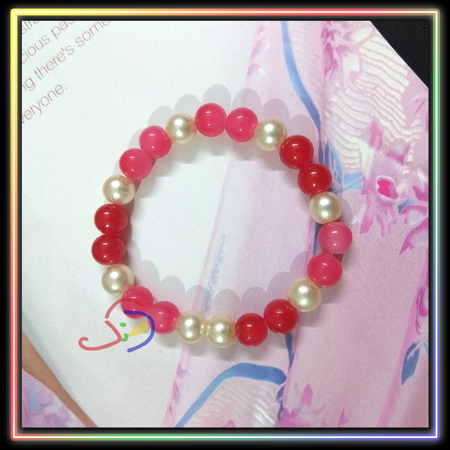 - Material: Glass beads, pearl beads & elastic.